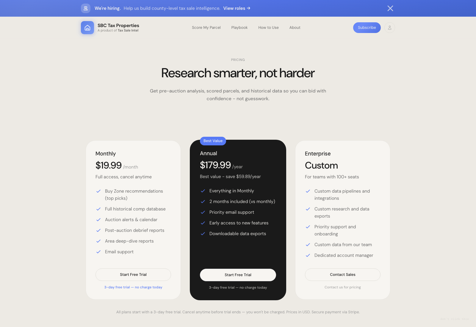 Tax Sale Intel is a county-by-county research platform built for a growing organization expanding into new tax sale markets. We shaped a product system that can launch bespoke county editions with local workflows, local signals, and investor tools tuned to how each jurisdiction actually behaves.
