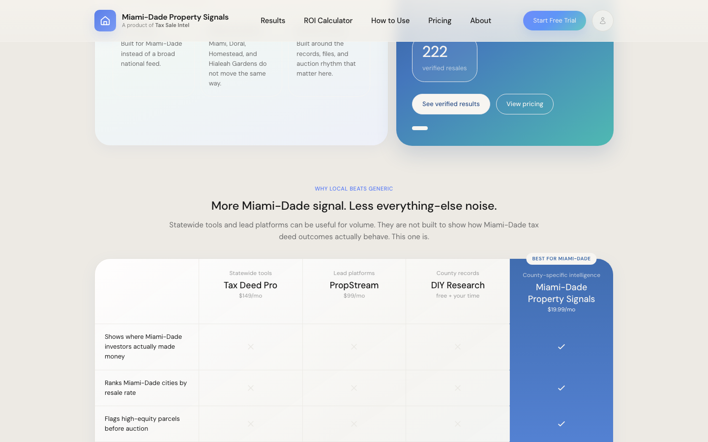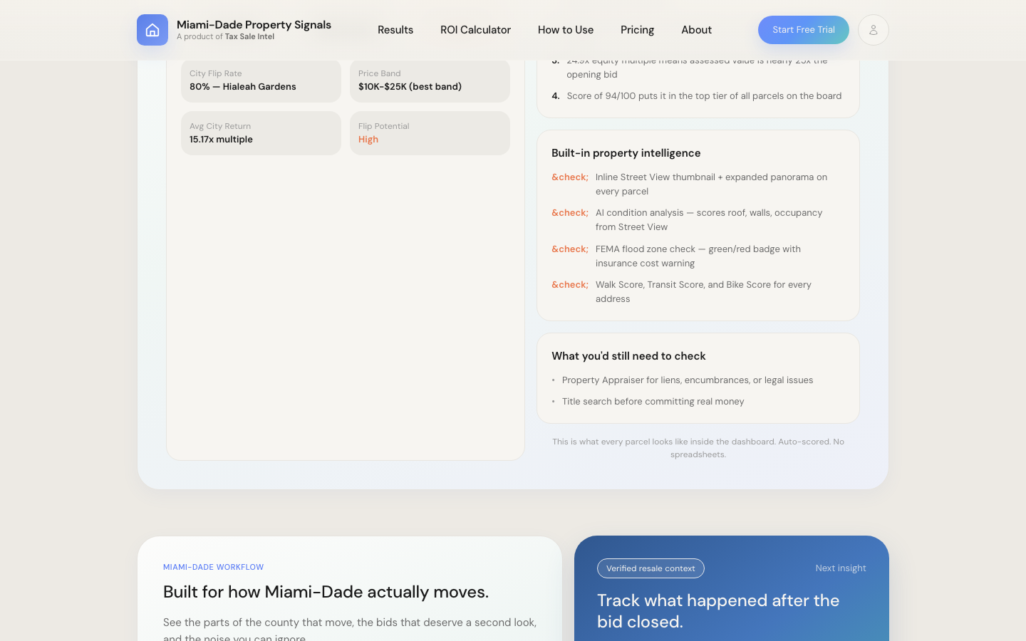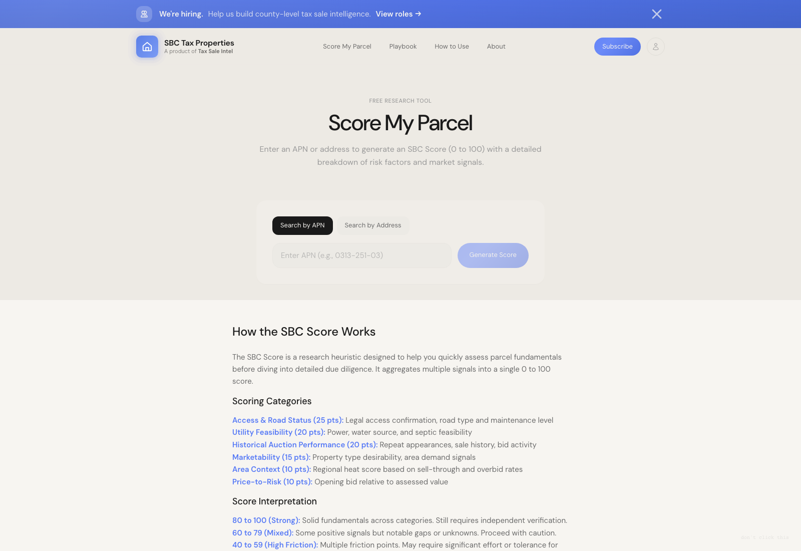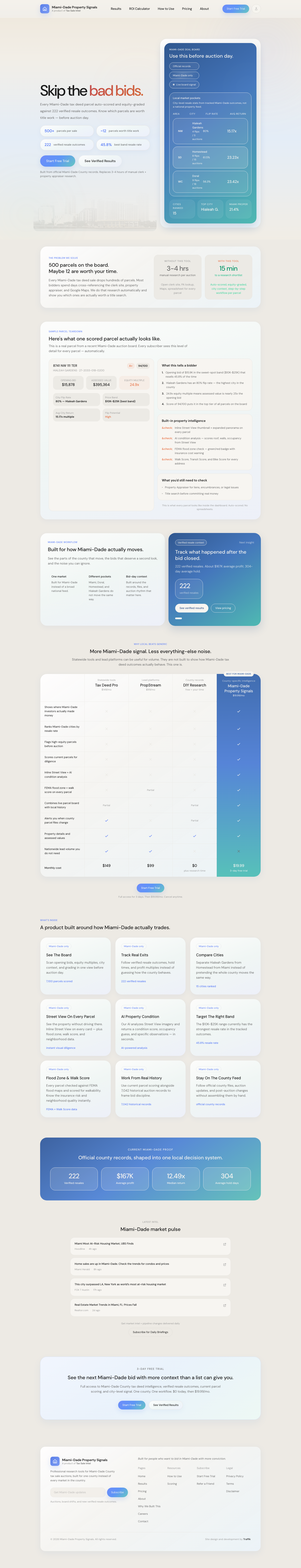 We designed a modular platform and marketing surface that can flex county by county. The system supports bespoke branding, county-specific research workflows, parcel scoring, resale context, guided playbooks, and pricing/tooling layers tailored to each market. That gave the team a repeatable foundation while still making every county edition feel purpose-built instead of templated.
